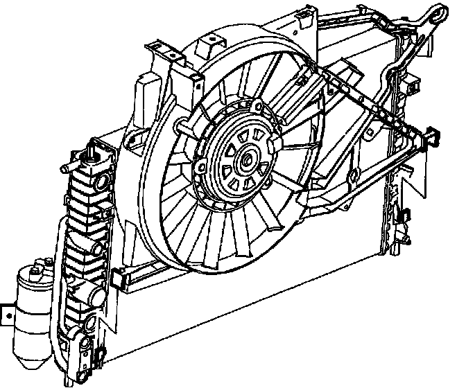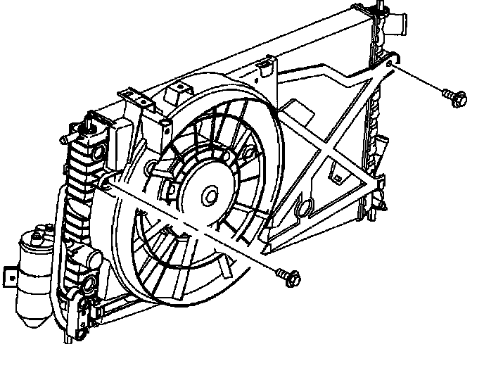 13. Install fan and shroud assembly onto radiator lower tabs.