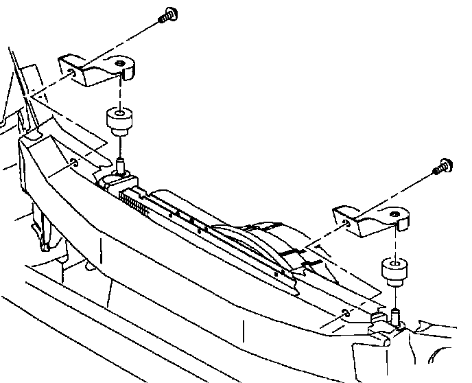20. Remove radiator upper mount bracket to rail bolts and remove upper bracket and rubber mounts.