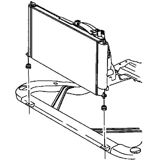 4. Position upper radiator mounts over upper pins and install radiator bracket to rail bolts.
