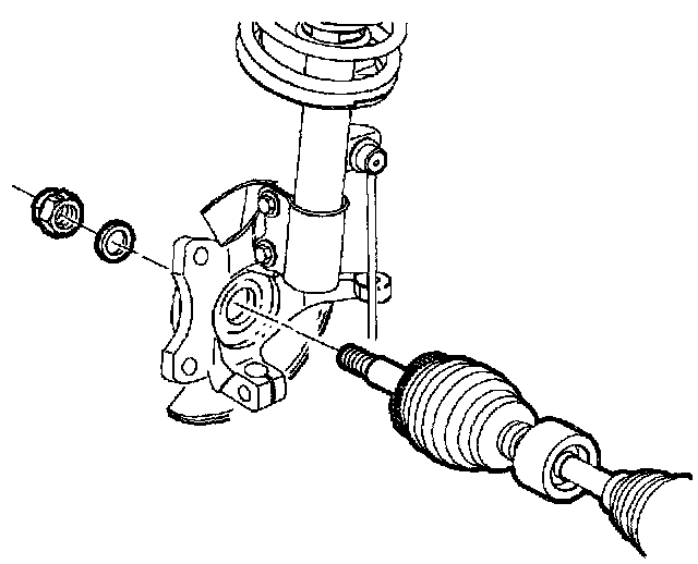 INSTALLATION1. Position steering knuckle onto axle shaft and install axle to hub washer and a new nut.