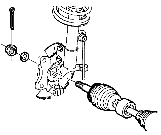 Torque: Nut to: 115 Nm (85 ft. lbs.) to seat the bearing back nut off and retighten to: 20 Nm (15 ft. lbs.) using a torque angle gauge turn nut additional 90 degrees. If required, continue turning nut until a cotter hole aligns with castle nut slot.