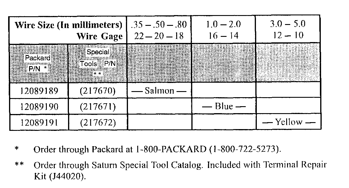 For the wiring used in Saturn vehicles, it is recommended that only approved Packard Electric Crimp and Seal Splice Sleeves (or equivalent) be used.