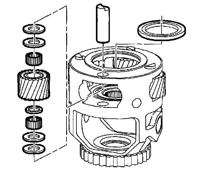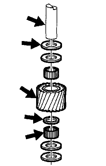 15. Inspect needle bearings, thrust washers, pinion gears, and planet pinion pins for excessive wear. Polishing is a normal condition for the pinion pins and needle bearings.