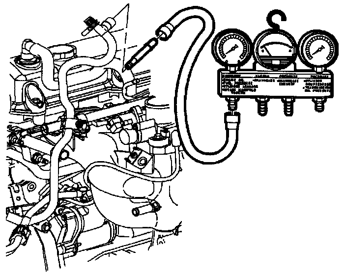 3. Disconnect fuel feed line at fuel rail and install Gauge Bar Set SA9127E into fuel line.