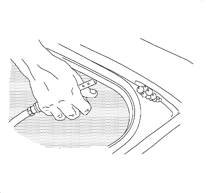 After completion of any waterleak repair, the general area should be retested using the waterstand test. Do not use an air hose or a water hose to test repaired areas. The repair material may dislodge under abnormal pressure application.