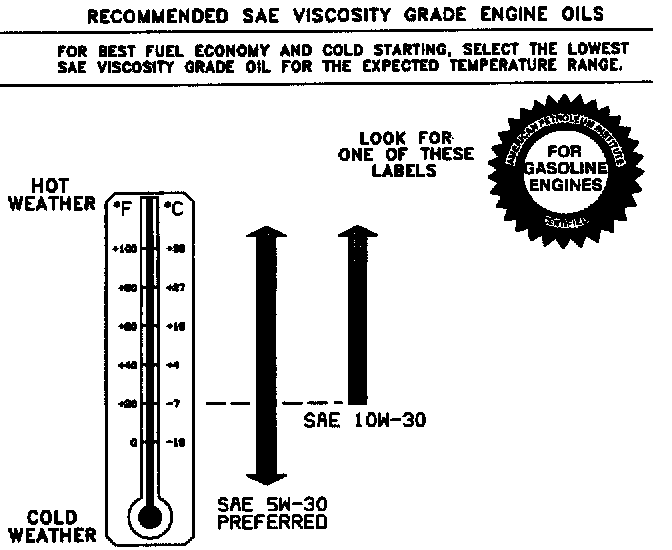 NOTICE: Use only oil with the American Petroleum Institute Certified for Gasoline Engines "Starburst" symbol. Failure to use the recommended oil can result in engine damage not covered by your warranty.