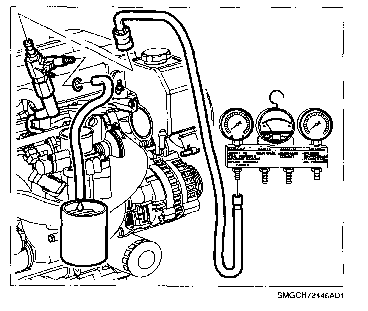 CAUTION: WHENEVER FUEL LINE FITTINGS ARE LOOSENED OR DISCONNECTED, WRAP A SHOP CLOTH AROUND FITTING TO COLLECT FUEL WHILE CONNECTING GAUGE. PLACE THE CLOTH IN AN APPROVED CONTAINER.
