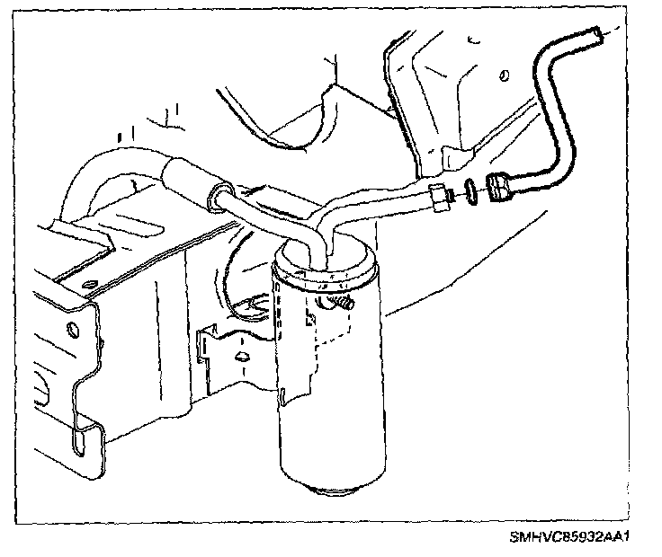 5. Install and lubricate new O-ring with R-12 Refrigerant oil (mineral) and connect liquid line on receiver - dehydrator. Tighten fitting.