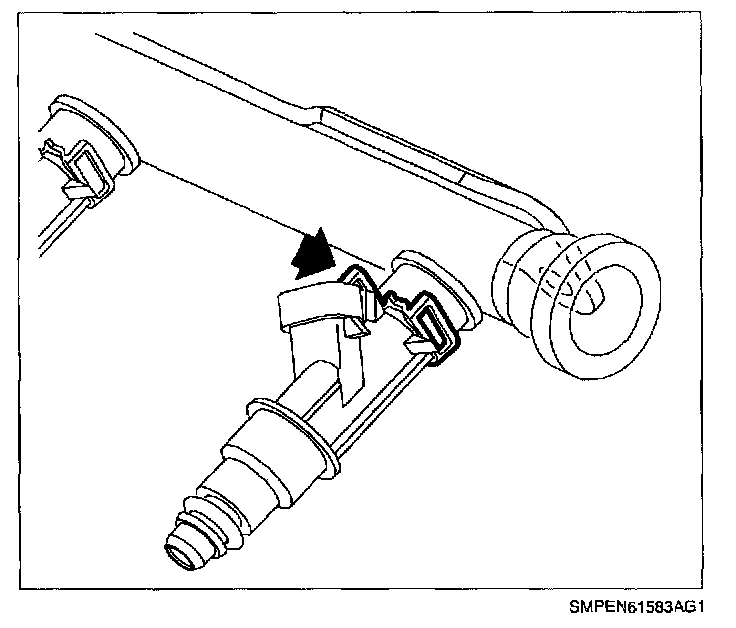 IMPORTANT: Use care in removing fuel injectors to prevent damage to the electrical connector pins on the fuel injector and the nozzle. The fuel injector is serviced as a complete assembly only. Since it is an electrical component, it should not be immersed in any type of cleaner. Support the fuel rail to avoid damaging other components while removing the fuel injector.