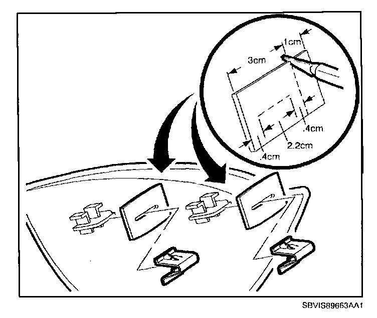 7. Install new attaching clip (P/N 21303269) on each tab.