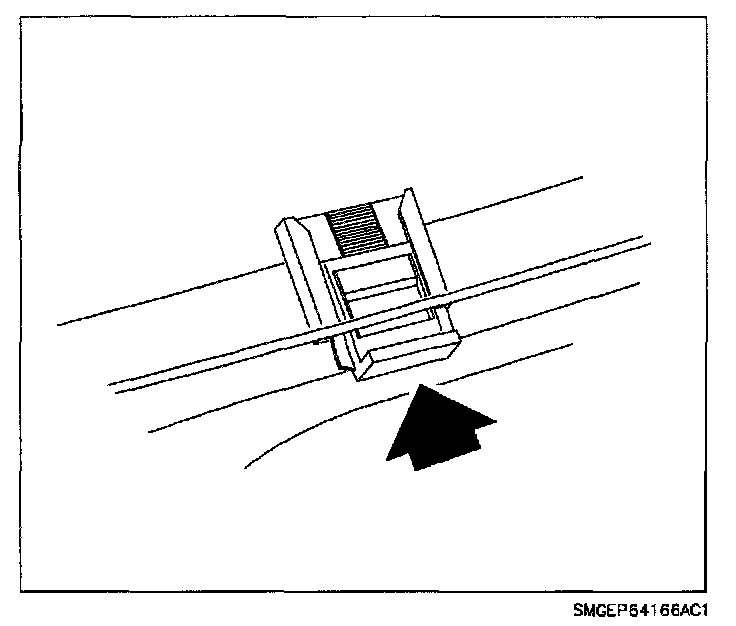 IMPORTANT: The glass anti-slide clips will be damaged in the removal process. Make certain the anti-slide clips are replaced with new service parts. Do not slide the adjuster upward until the window assembly is installed.