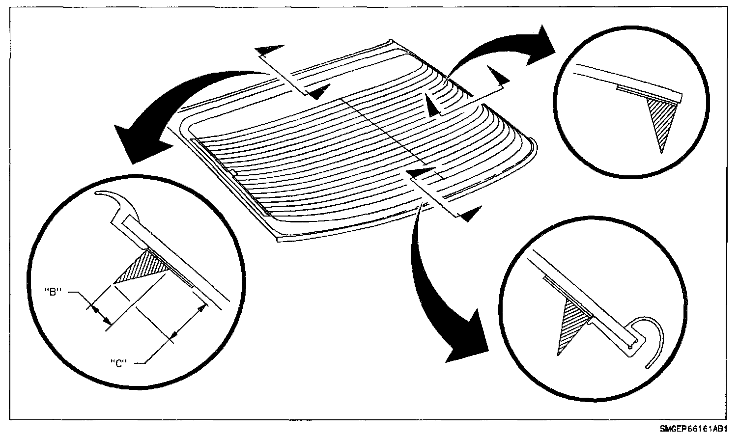 6. Remove rear compartment lid weatherstrip at package shelf.