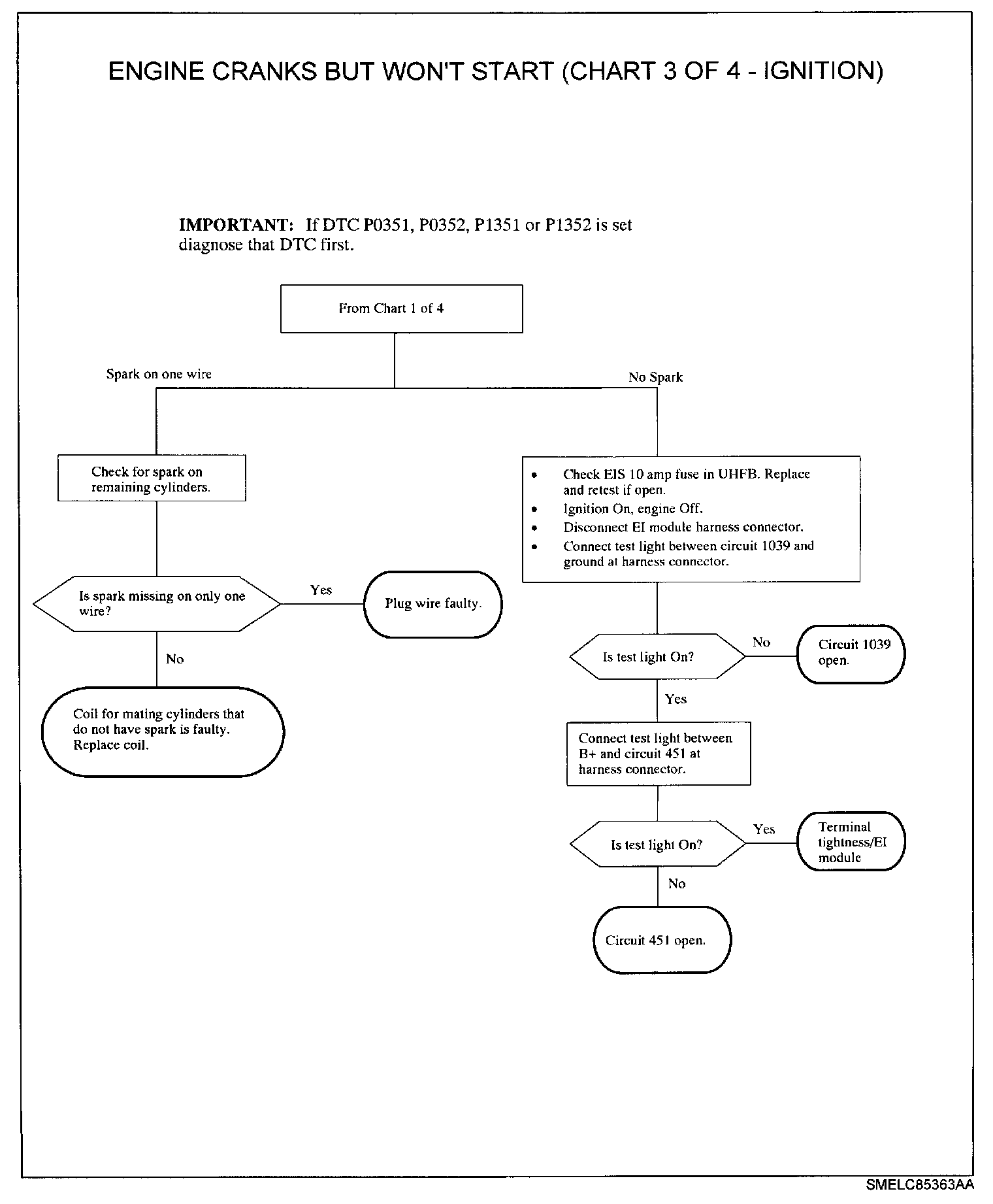 A missing cam pulse to the PCM from the EI module via circuit 633 will NOT cause a no start.