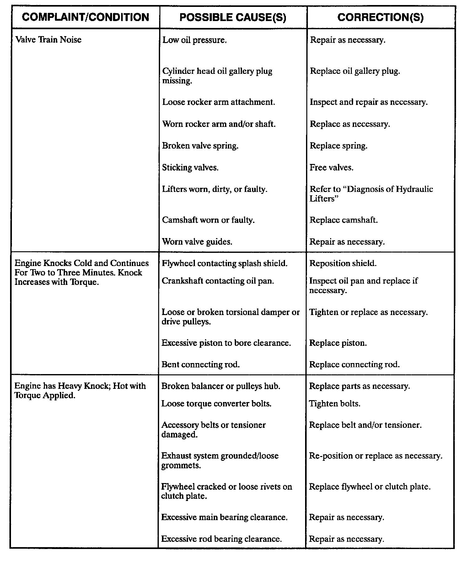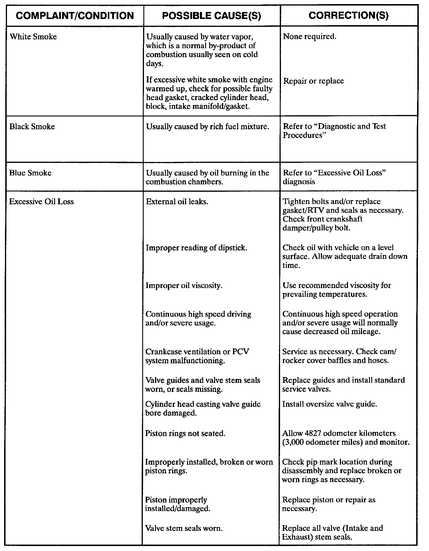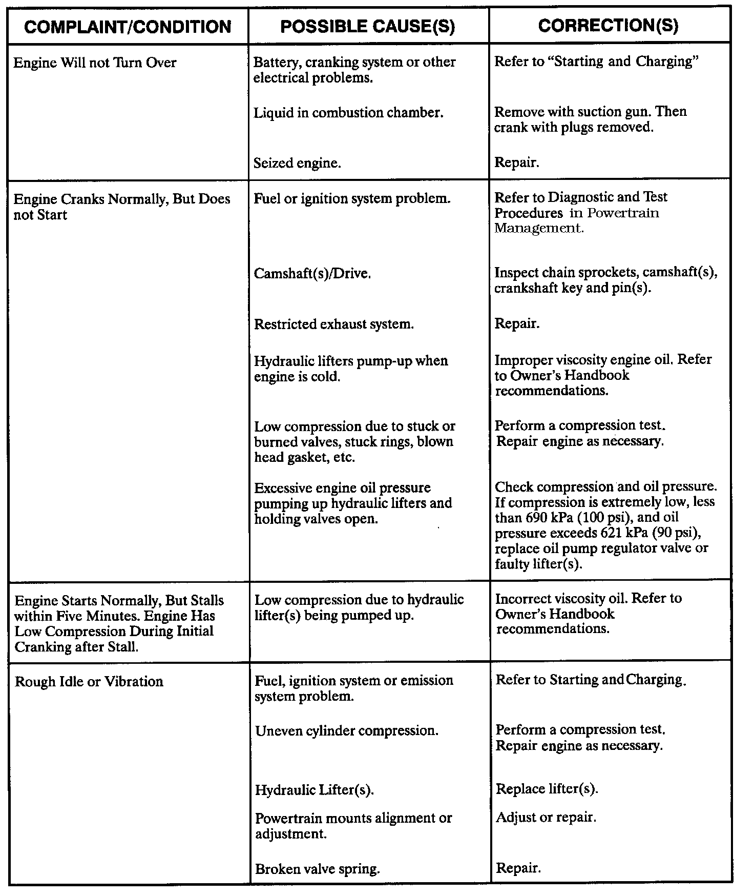 Engine Diagnostic Chart