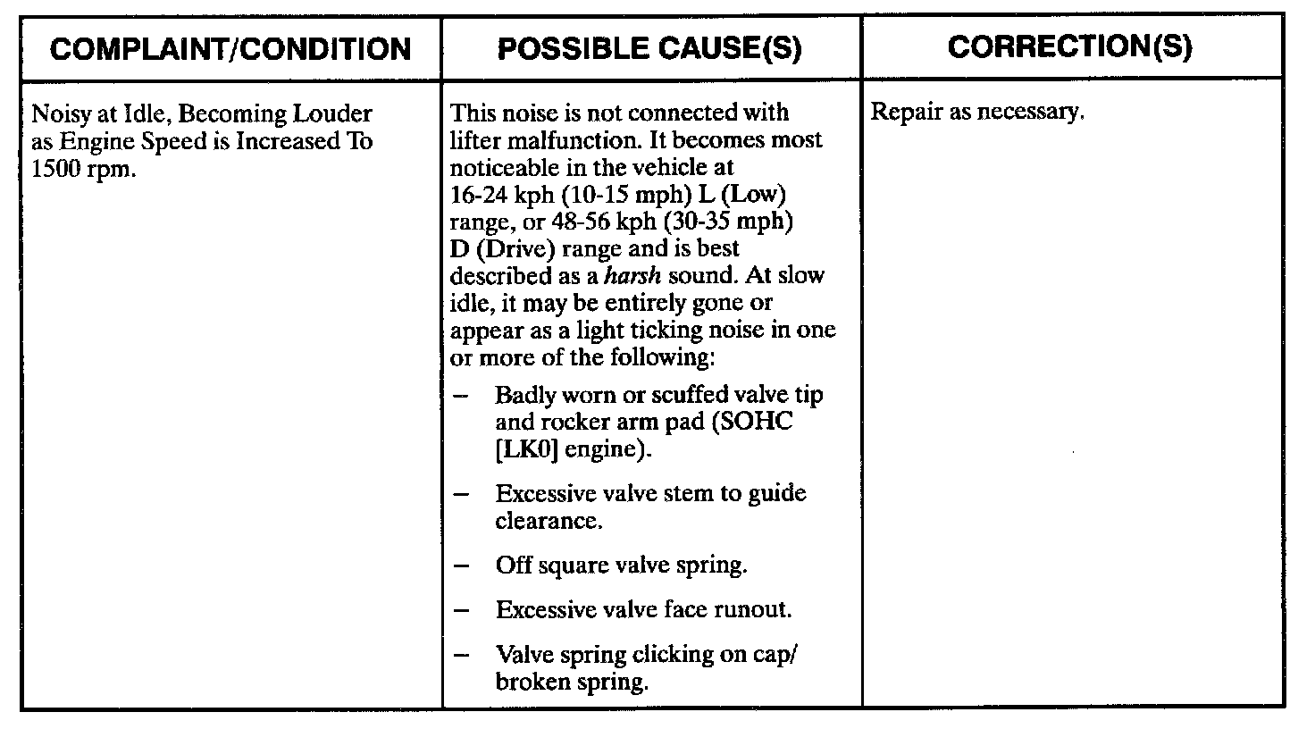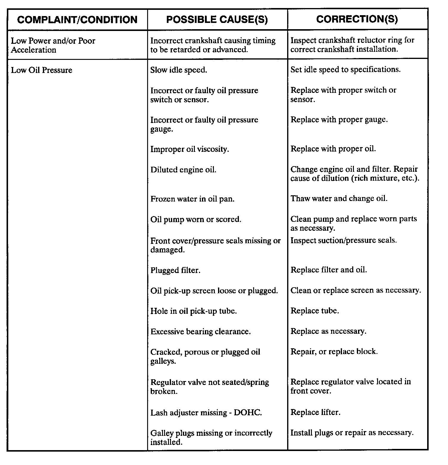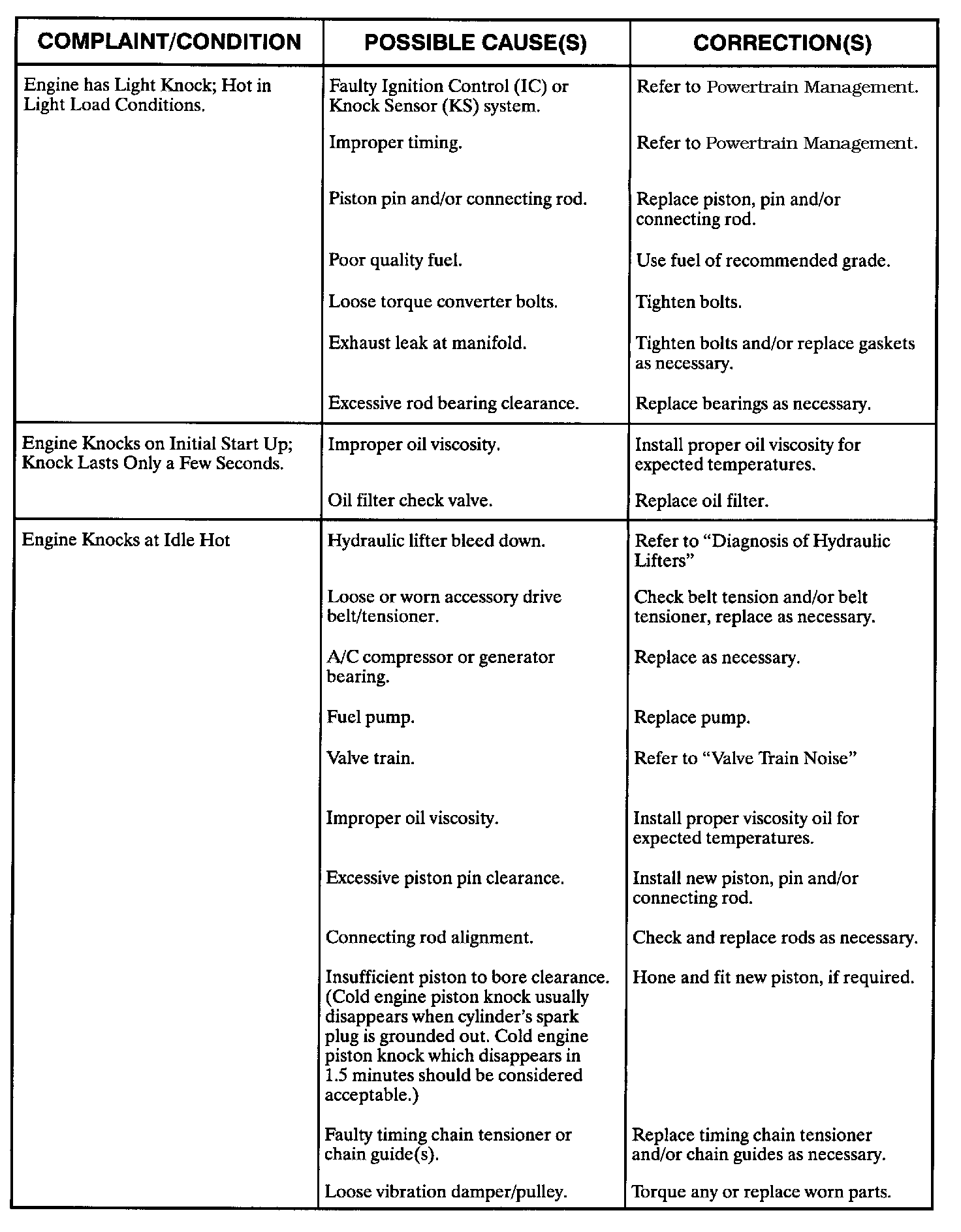 Engine Diagnostic Chart