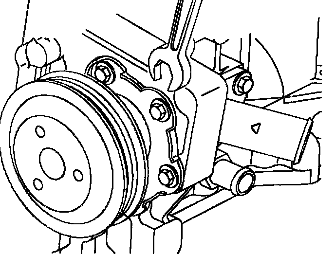 2. Install the pulley loosely on the water pump hub. Do not install the pulley bolts.