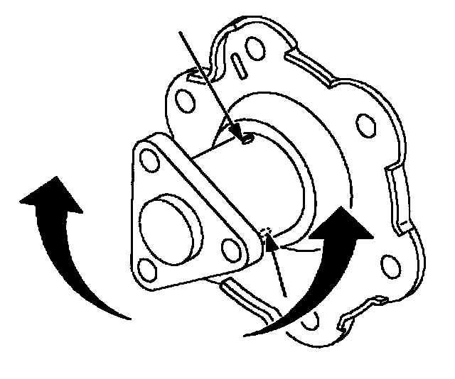 IMPORTANT: A small mark (bump) is located next to one attachment bolt. The mark is positioned at the 11 o'clock position during installation of the water pump.