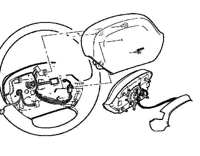 DRIVER INFLATOR MODULE (AIR BAG)CAUTION: SAFETY PRECAUTIONS MUST BE FOLLOWED WHEN HANDLING A DEPLOYED INFLATOR MODULE (AIR BAG). AFTER DEPLOYMENT, THE INFLATOR MODULE (AIR BAG) SURFACE MAY CONTAIN A SMALL AMOUNT OF SODIUM HYDROXIDE, A BY-PRODUCT OF THE DEPLOYMENT REACTION, THAT IS IRRITATING TO THE SKIN AND EYES. MOST OF THE POWDER ON THE INFLATOR MODULE (AIR BAG) IS HARMLESS. AS A PRECAUTION, WEAR GLOVES AND SAFETY GLASSES WHEN HANDLING A DEPLOYED INFLATOR MODULE (AIR BAG), AND WASH YOUR HANDS WITH MILD SOAP AND WATER AFTERWARDS.
