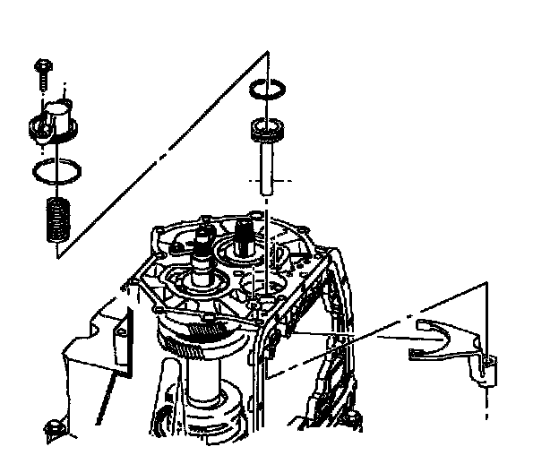 4. Remove the forward/reverse servo piston cover bolts, remove cover, servo piston spring, servo piston bolt, and shift fork.