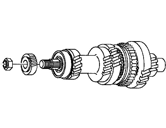 1. Assemble output shaft with 5th driven gear as shown. Use old nut and torque.