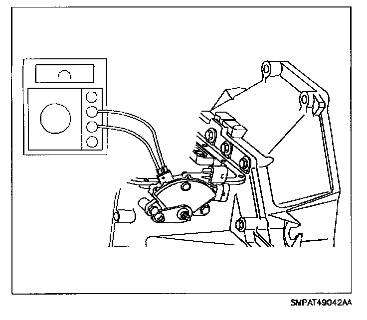 1. Place transaxle in D (Drive). Use ohmmeter or continuity tester to check for continuity across terminals on selector switch. Rotate the transaxle range switch from the left fender towards the engine until continuity is achieved.
