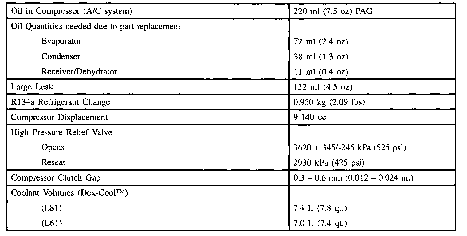 Fluid Capacities: