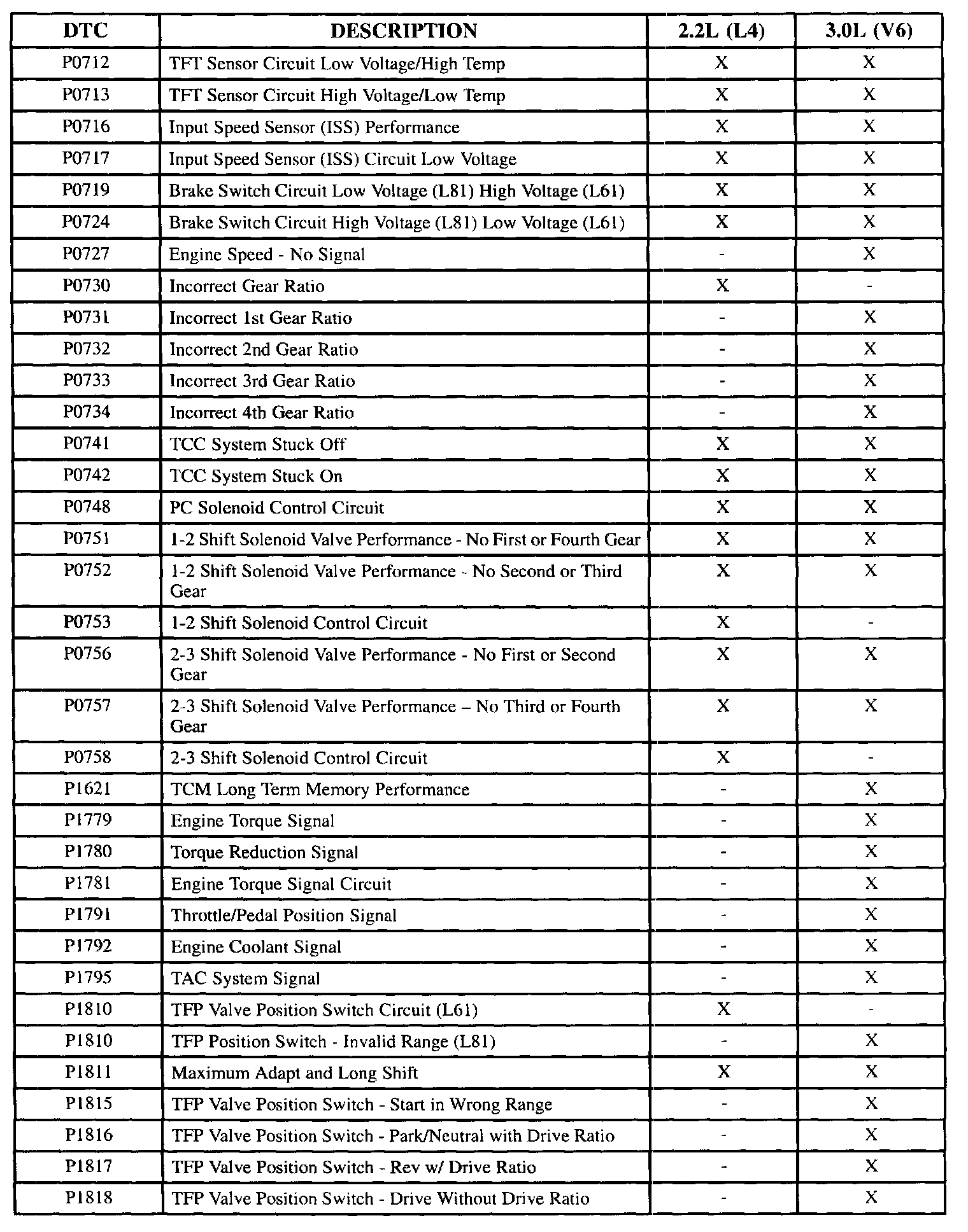 Diagnostic Trouble Code Descriptions