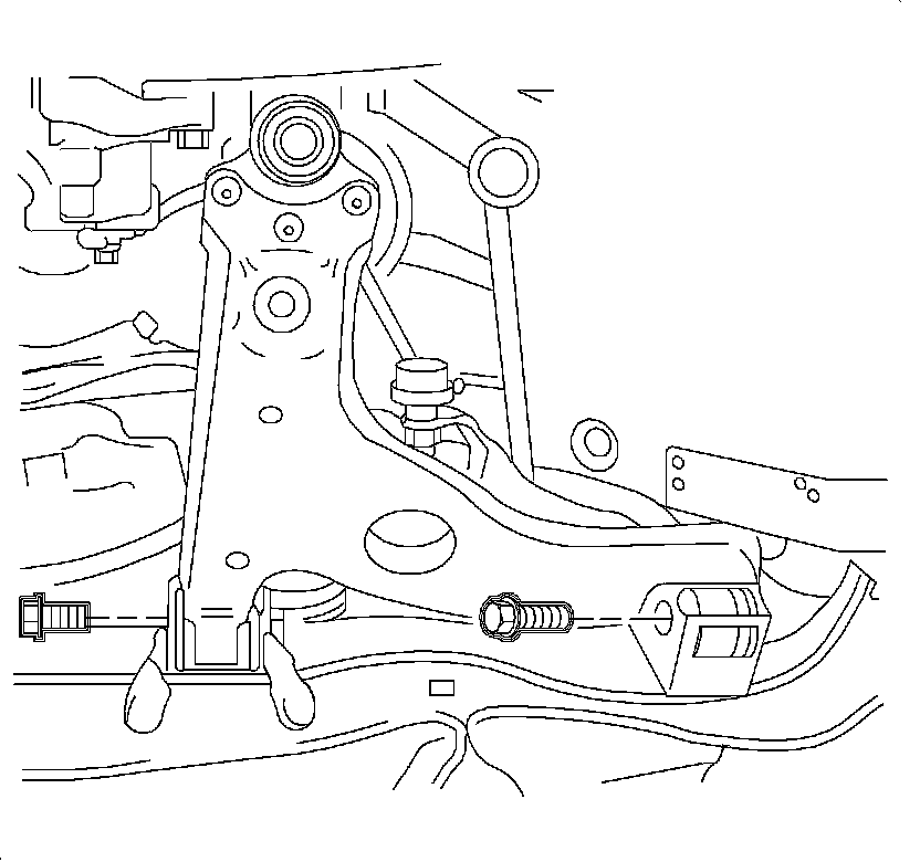 3. Remove the control arm-to-frame assembly bolts and discard the bolts.