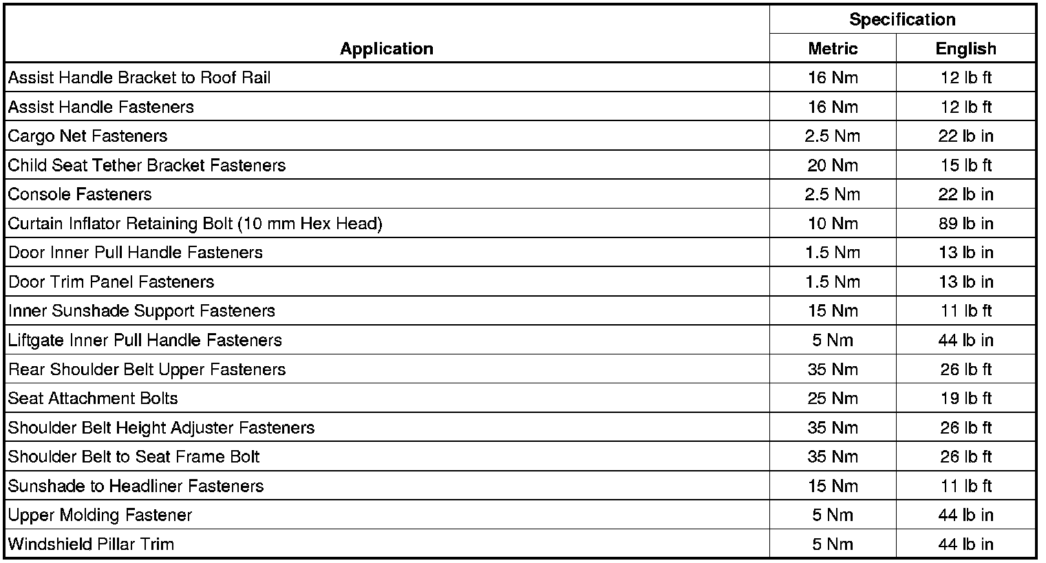 Interior Trim - Fastener Tightening Specifications