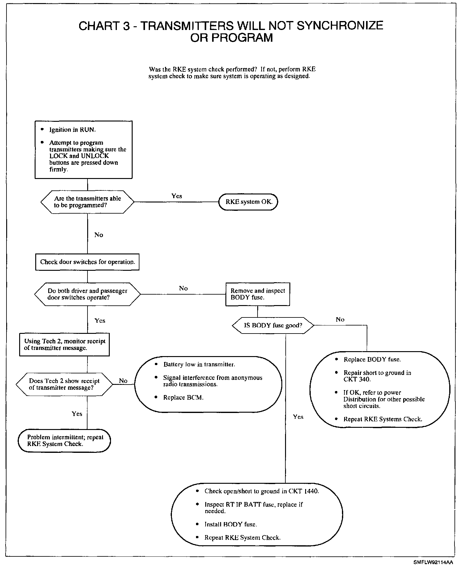 Chart 3 - Transmitters Will Not Synchronize or Program