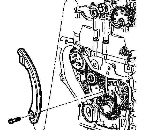 14. Install adjustable timing chain guide through opening on top of cylinder head and install chain guide bolt.