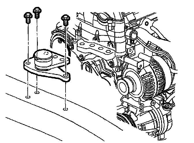 NOTICE: It may be necessary to lower the engine slightly with a crow bar so that bolt-head clears frame rail.