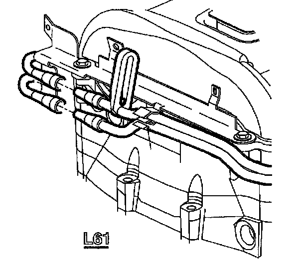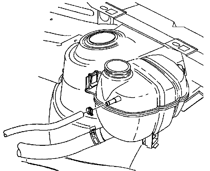 58. Attach cylinder head dogas hose onto coolant reservoir and attach to harness retainers.