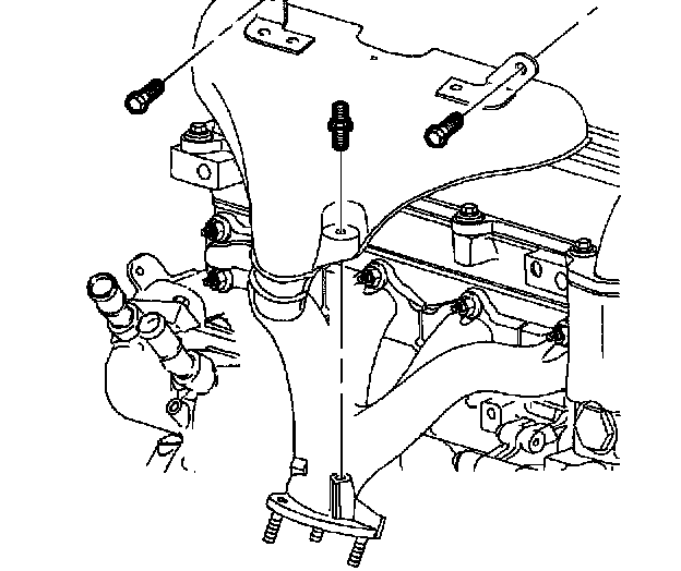 50. Install intake manifold bolts and nuts. Tighten by starting from center bolt and working outward.