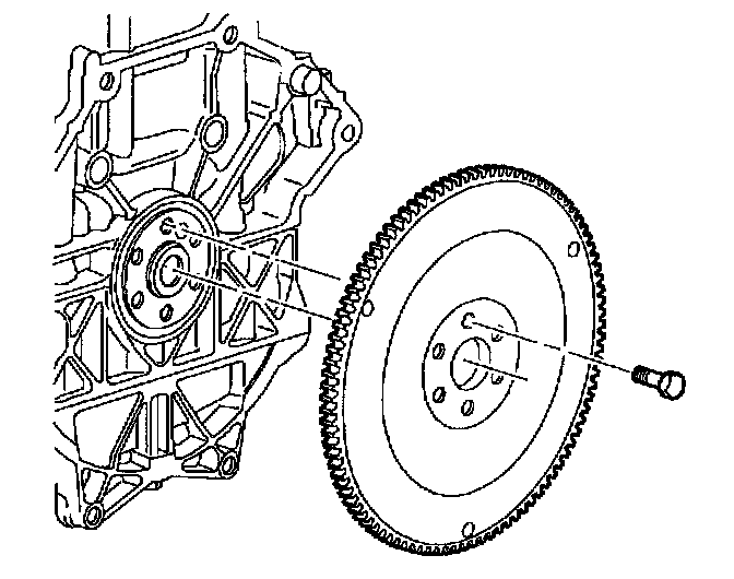1. Remove flywheel attaching bolts. Use Flywheel Holding Tool J43653to prevent crankshaft rotation.