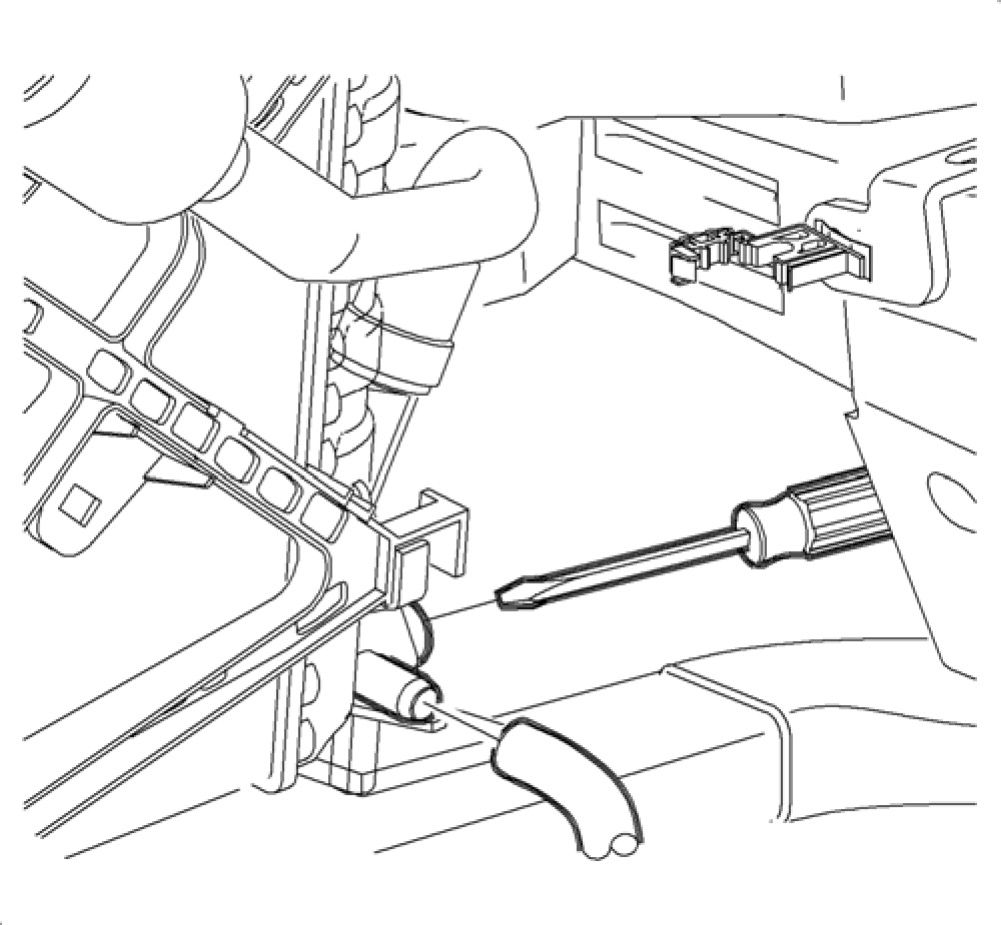 14. Remove the heater core pipe to heater core clamps. The clamps may need to be rotated to gain access to the clamp retaining tab.