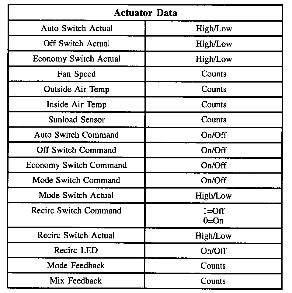 Scan Tool Display - Actuator Data: