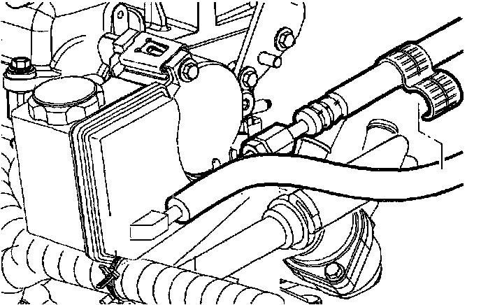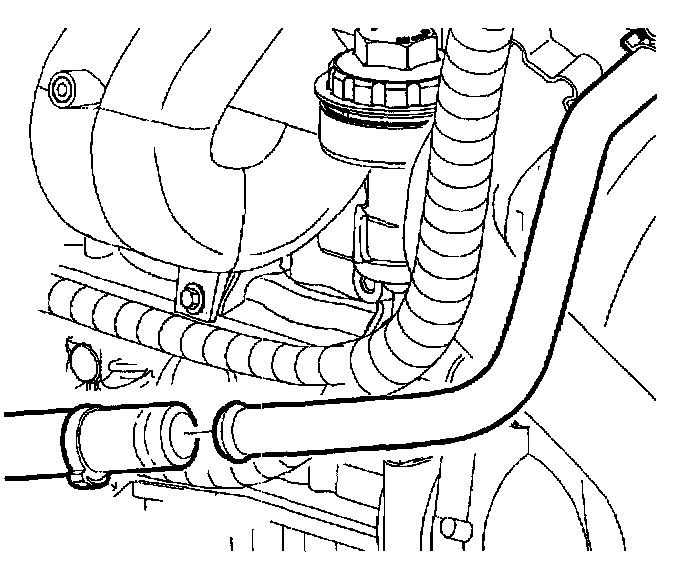 11. Install the hose clip to the two power steering lines.