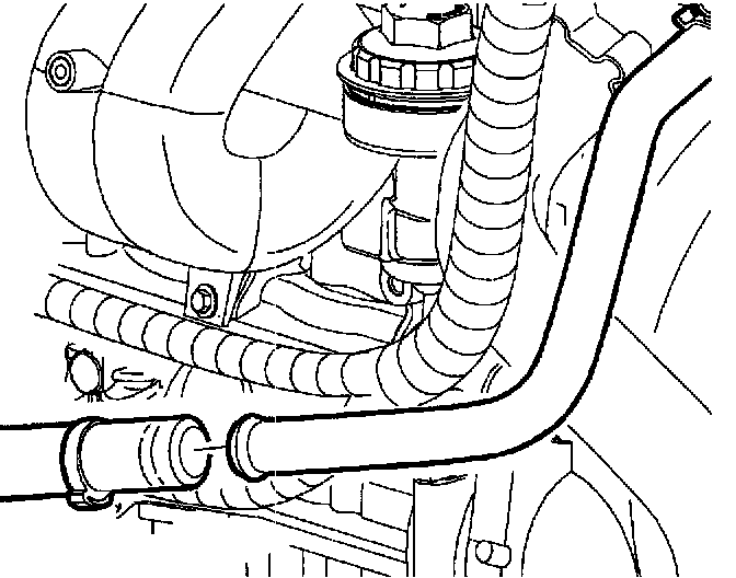3. Remove clamp from A.I.R. hose behind the cooling fan.