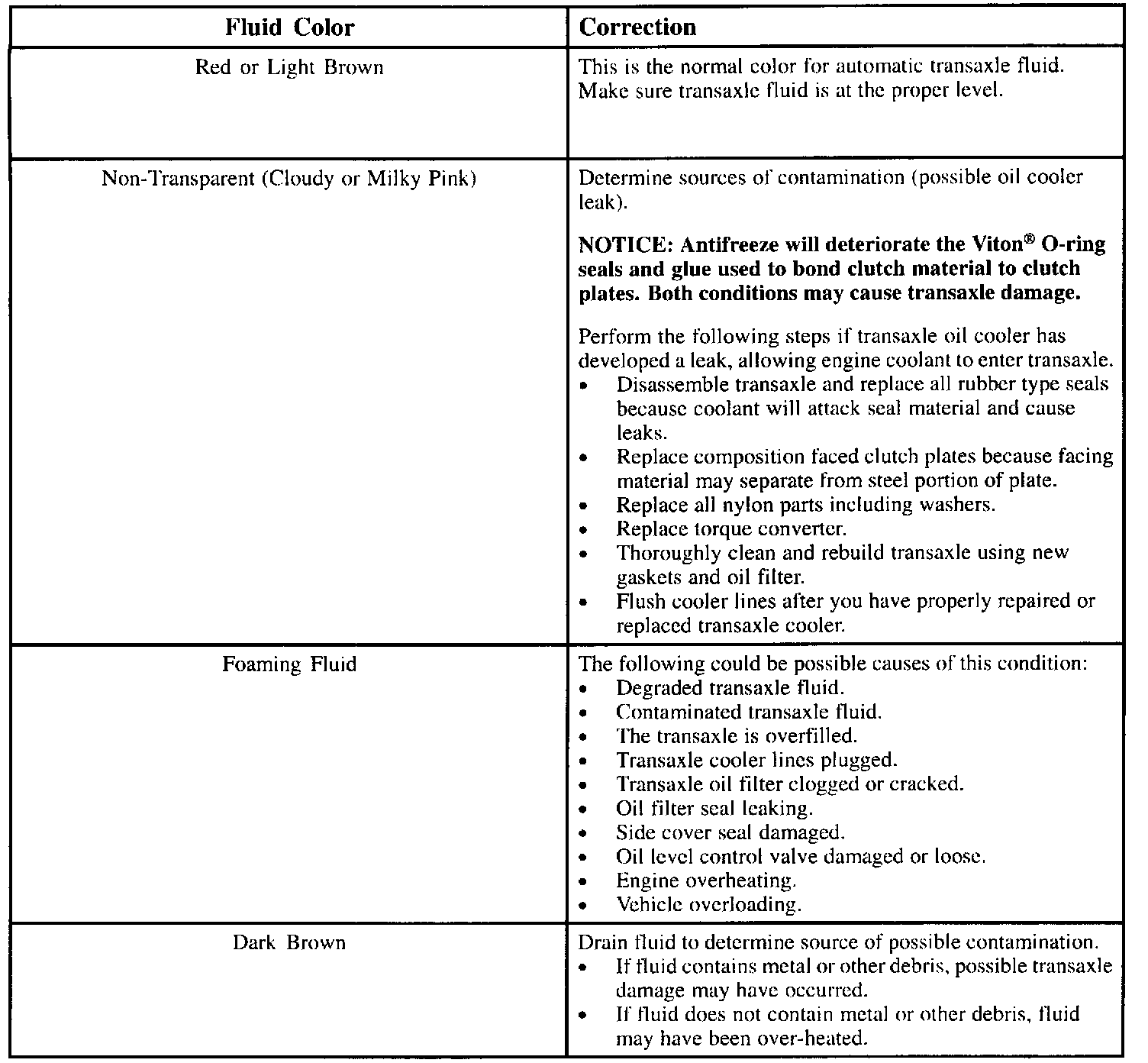 - Saturn ATF (P/N 21005966) is not compatible with this transaxle. If Saturn ATF is used, transaxle damage will result.