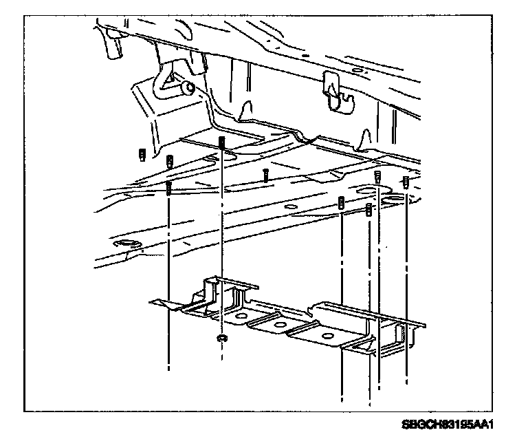 3. Reposition fuel tank mounting straps and shield around tank and install strap mounting bolts to underbody.