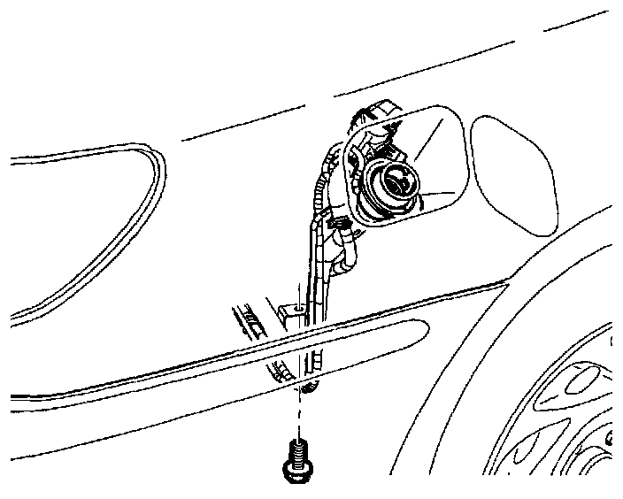 7. Loosely install filler pipe lower bracket attachment screw but do not tighten.