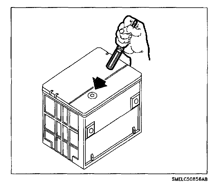 ^ Do not charge the battery if the hydrometer is clear or yellow - tap the hydrometer lightly to dislodge any gas bubbles. If the indicator is still clear or yellow, replace the battery.