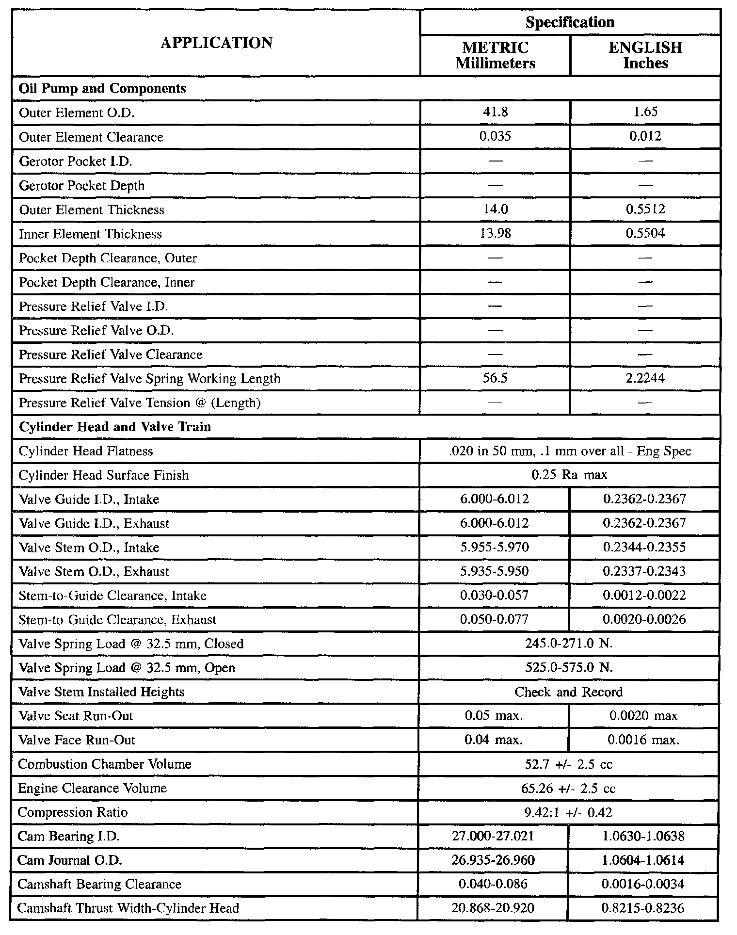 General Engine Data/Specifications