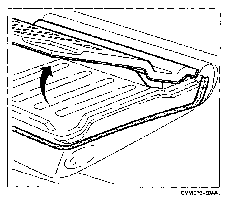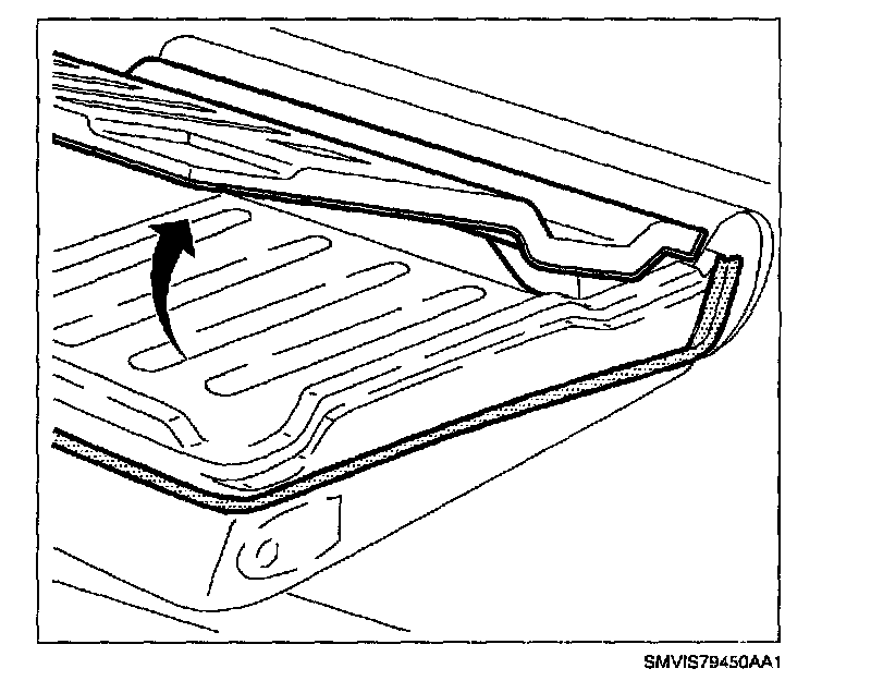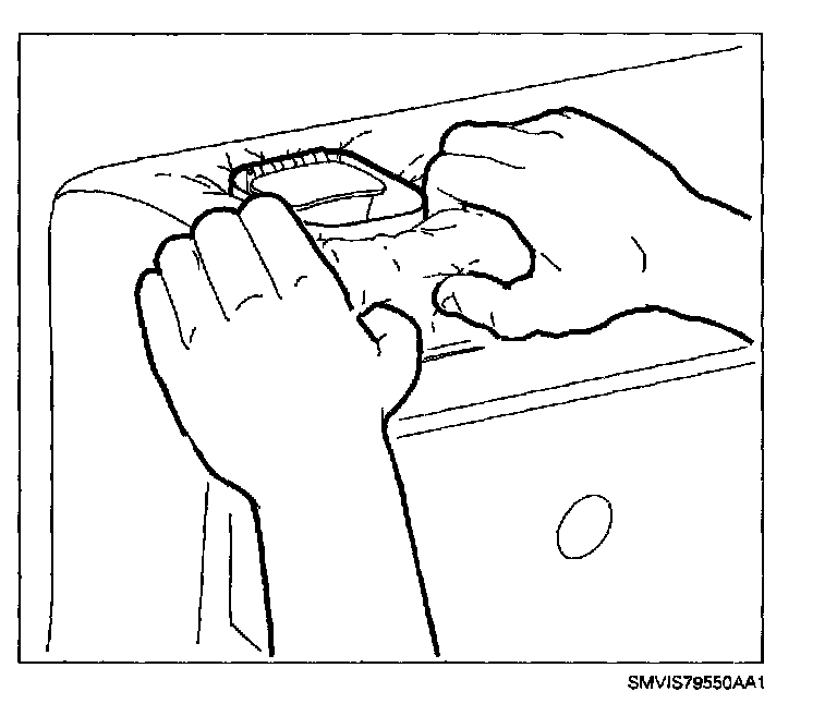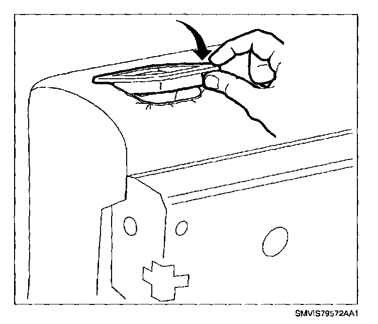 4. Starting at rearmost portion, pull upward to remove rear seat latch escutcheon.