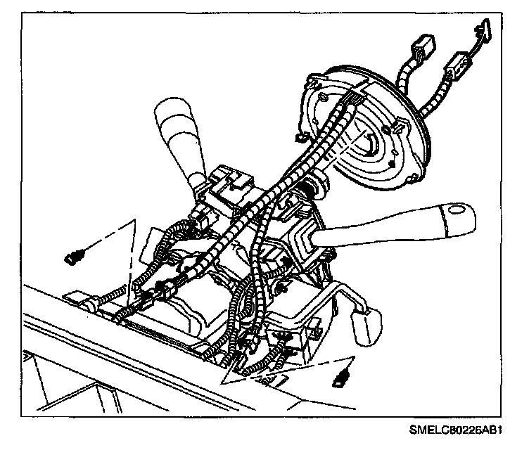 1. Route SIR wiring harness and horn/cruise connector behind turn signal lever combination switch and down steering column.