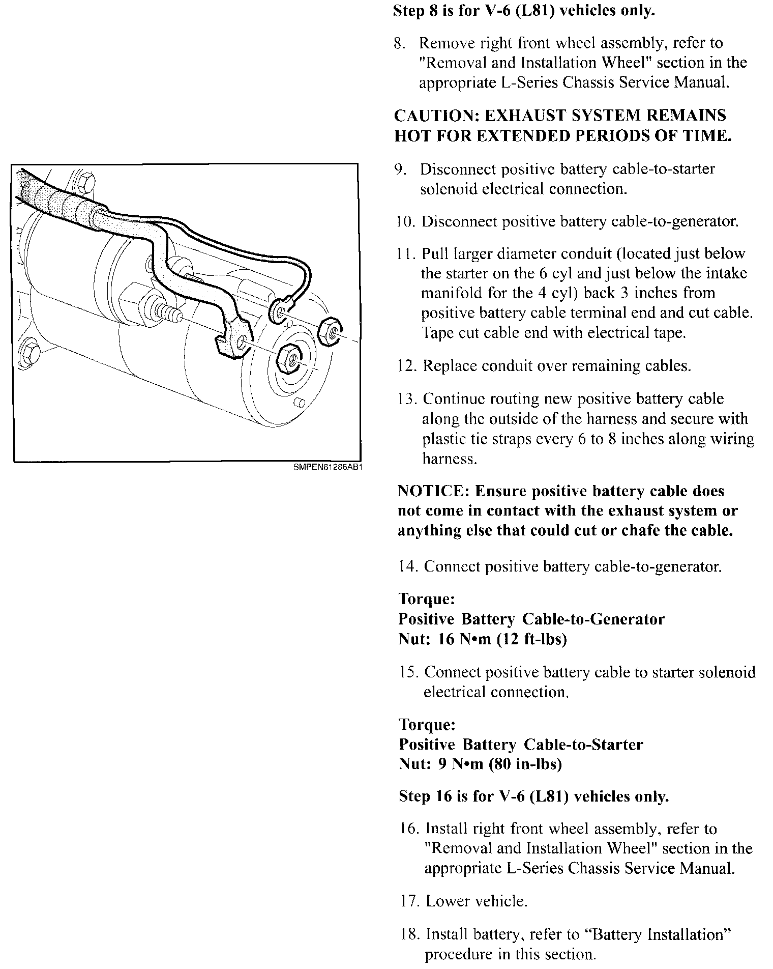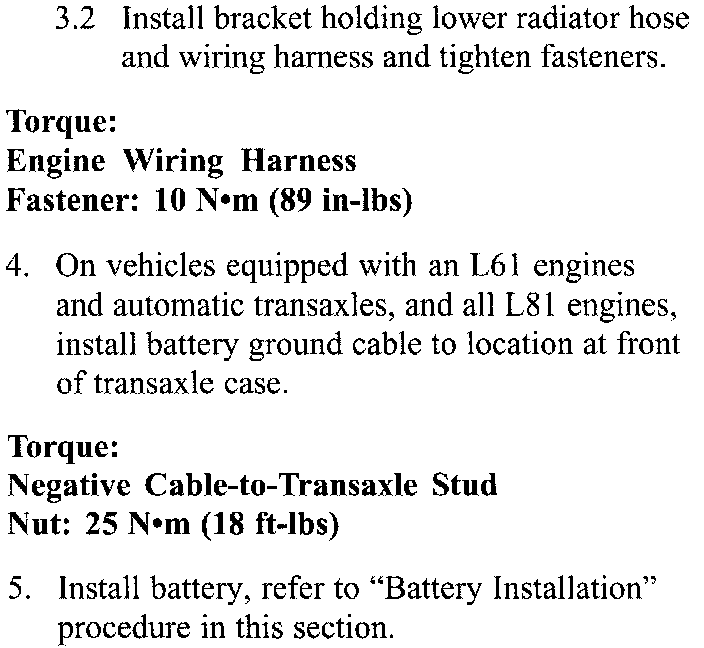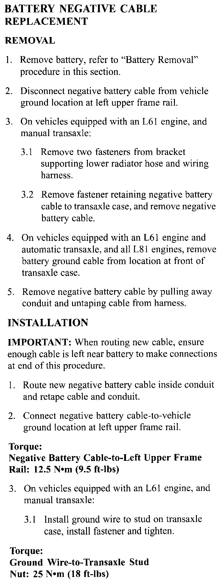 Service Manual Update for 2000, 2001 and 2002 L-Series (L61) and (L81) Engine Service Manuals Regarding New Positive and Negative Battery Cable Replacement Procedures