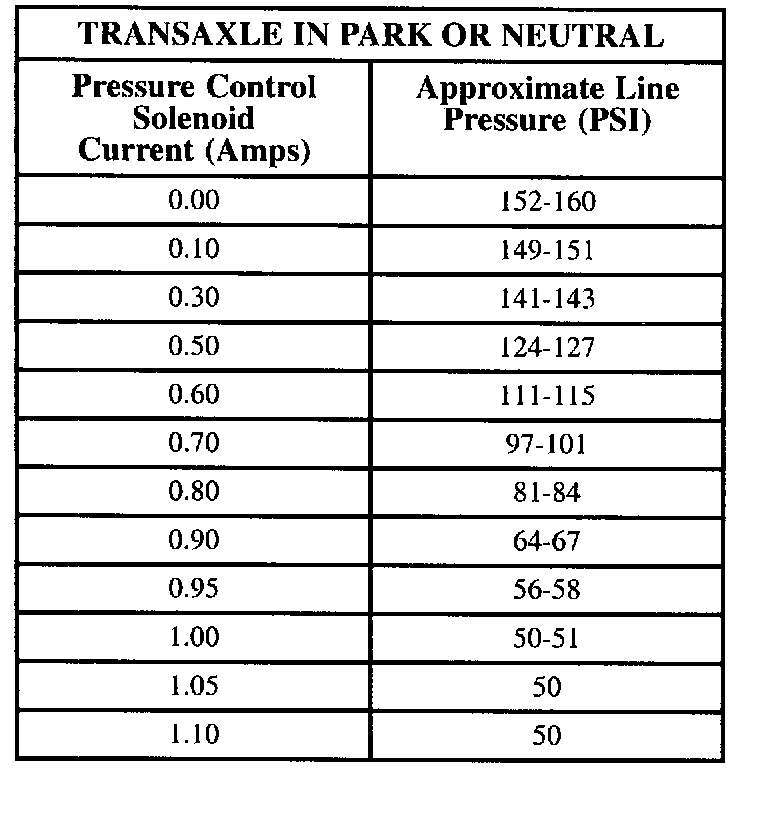 Line pressures are calibrated for two sets of gear ranges -Drive-Park-Neutral and Reverse. This allows transaxle line pressure to be appropriate for different pressure needs in different gear ranges:
