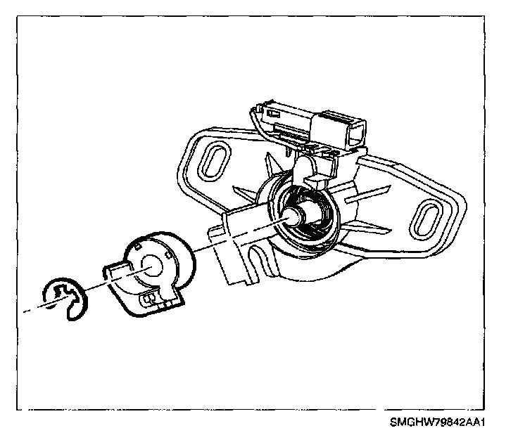 DISASSEMBLY1. Remove E-clip at rear of lock cylinder and remove pawl.