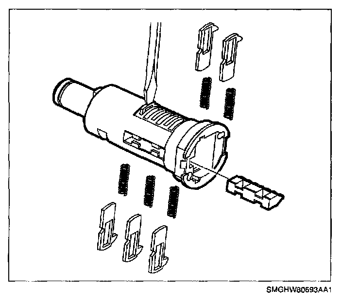 IMPORTANT: When the tumblers are removed from the lock cylinder tumbler, springs may fall out.
